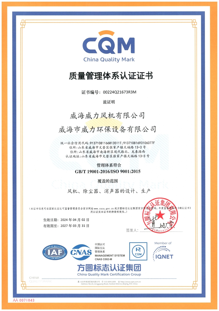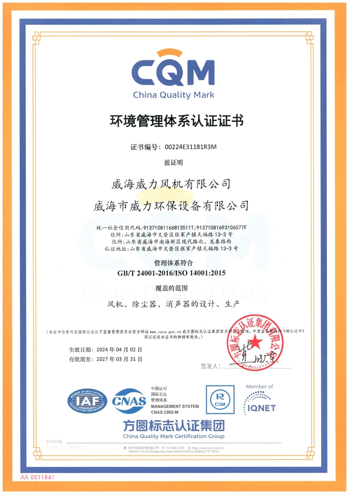 CQM环境管理体系认证证书