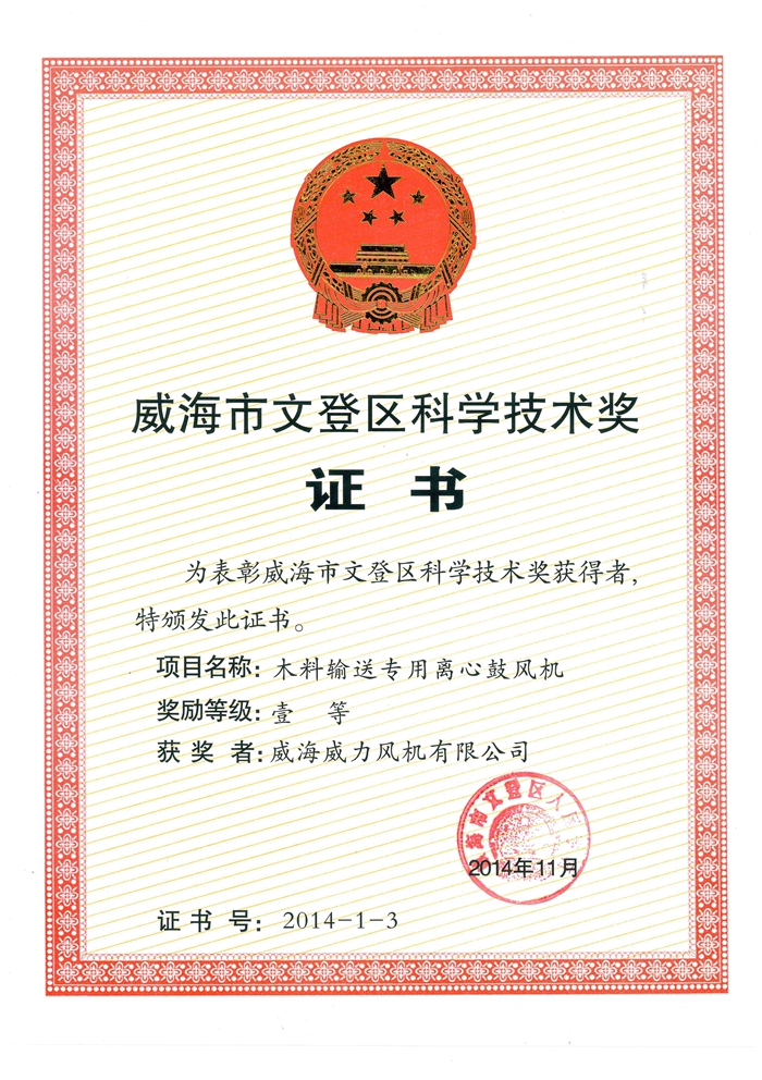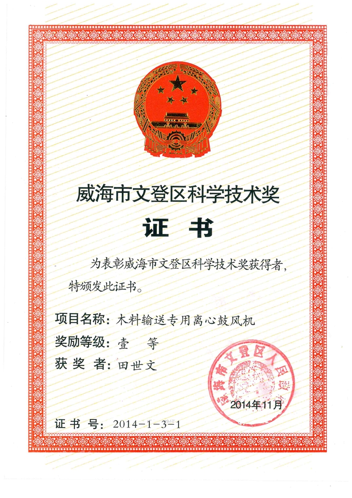 文登区科学技术进步奖 一等奖