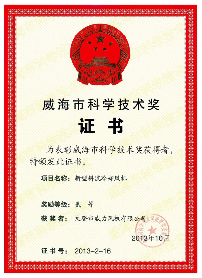 威海市科学技术奖 二等奖